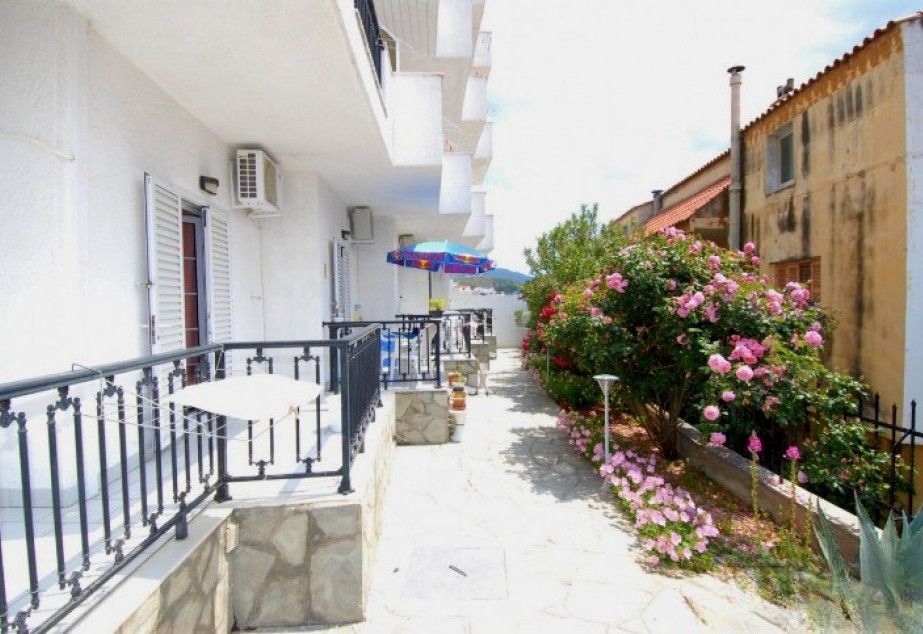 LOKACIJA: Na odličnoj poziciji, malo izvan centra letovališta (oko 650 metara), udaljena je od prve plaže oko 80 metara. Od poznate Paradiso plaže udaljena je svega oko 500 metara, a od velike gradske plaže (prema kompleksu Porto Carras), udaljena je oko 1500 metara.