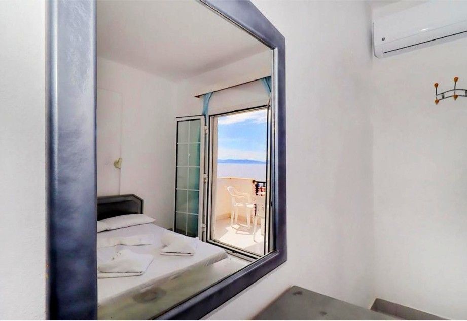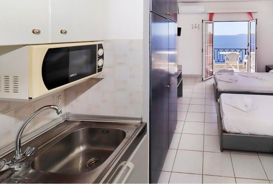STUDIA: Vila Athene se sastoji od studija na drugom i trećem spratu i apartmana koji se nalazi na malo izdignutom prizemlju sa pogledom na dvorište. Opremljeni su Starlink wi – fi Internetom, klima uređajem (uračunat u cenu) i smart TV-om. Studiji imaju pogled na more, sa čijih terasa se može uživati u nezaboravnim zalascima sunca. Dvokrevetni i trokrevetni studiji (STD 1/2, STD 1/3) se sastoje od dela za spavanje, sa manjim francuskim (francuski ležaj po grčkim standardima-120 cm) ili 2 ležaja (u std 1/2), ili manjim francuskim (francuski ležaj po grčkim standardima-120 cm) i jednim ležajem (u std 1/3), kuhinjskog dela (sa mikrotalasnom), kupatila i lepe terase sa garniturom za sedenje. Veličina studija je cca 25 kvm + terasa. Četvorokrevetni i petokrevetni apartman (1/4 APP, 1/5 APP) se sastoj od ulaznog dela u kojem se nalazi kuhinja i manji francuski ležaj (francuski ležaj po grčkim standardima-120 cm) i spavaće sobe sa manjim francuskim ležajem (francuski ležaj po grčkim standardima-120 cm120 cm) i standardnim ležajem, terase sa garniturom za sedenje. Veličina apartmana je cca 35 kvm + terasa.