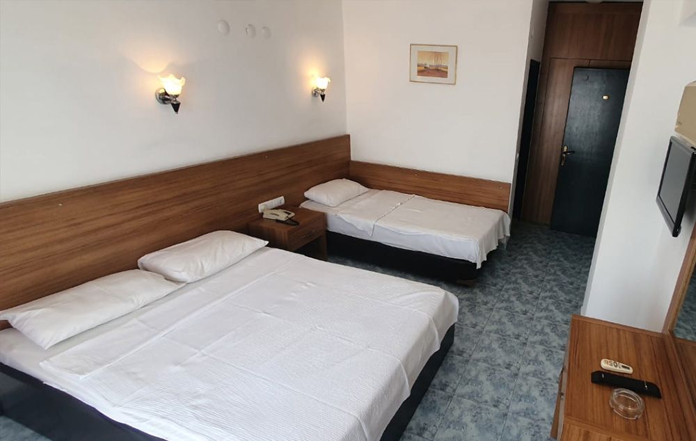 SOBE: Standardne sobe poseduju kupatilo (tuš, WC, fen za kosu), klima uređaj, telefon, TV i balkon. Maksimalno borave 3 odrasle osobe.
